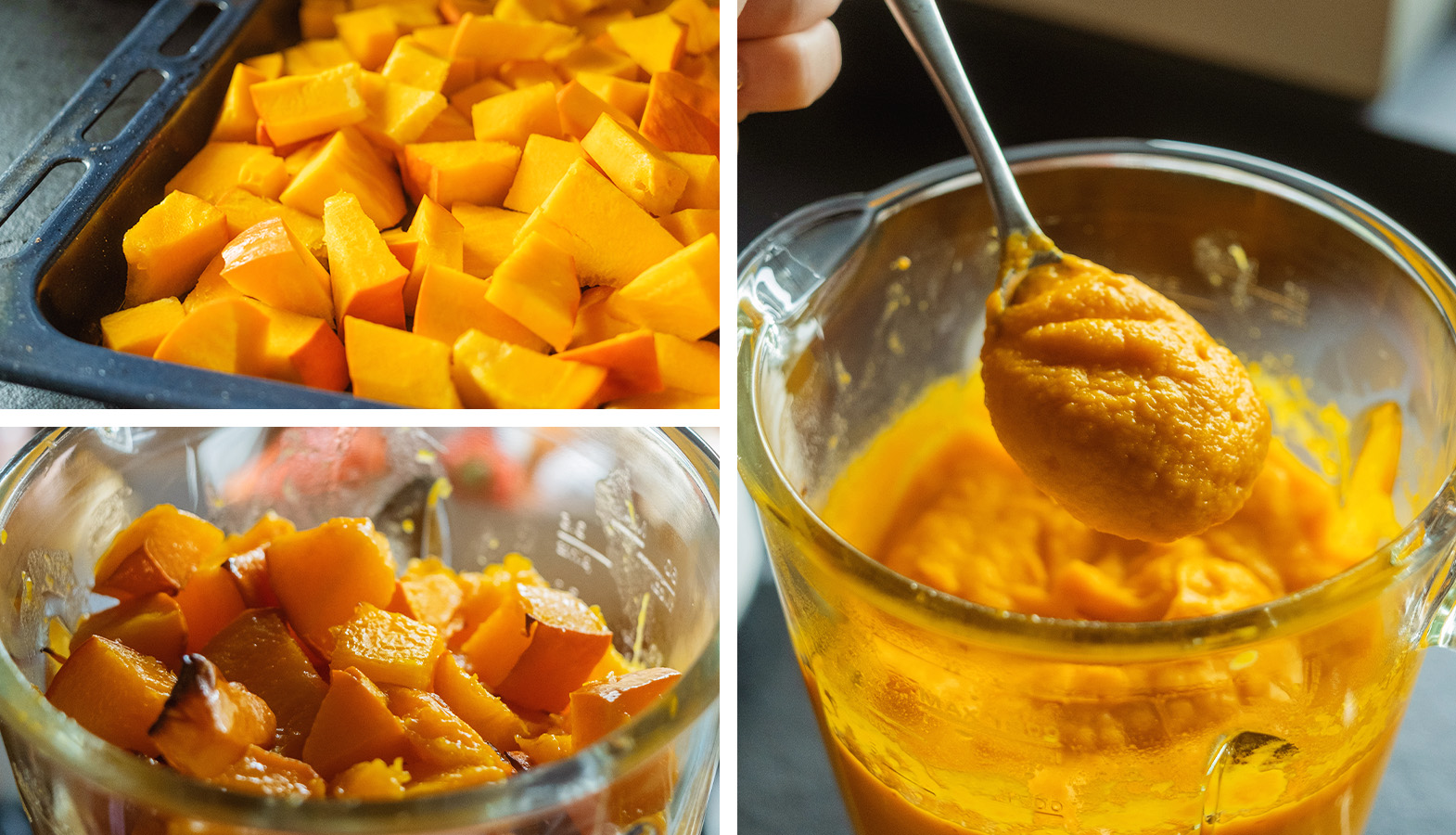 Je súčasťou všetkých nasledujúcich receptov. A keďže ho robím z tekvice Hokkaidó, ani ju nelúpem. Šupka pri pečení krásne zmäkne a dá sa dohladka rozmixovať spolu s dužinou. Potrebujete len 1 tekvicu Hokkaidó a 1 lyžicu olivového oleja.